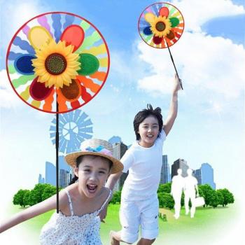 Double Layer Sequin Sunflower Windmill Wind Spinner Colorful Pinwheel Home Garden Yard Decoration Kids Outdoor Toys