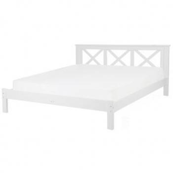 BELIANI Modern Super King Size Bed Frame in White Pine Wood with Headboard and Slats, 6ft