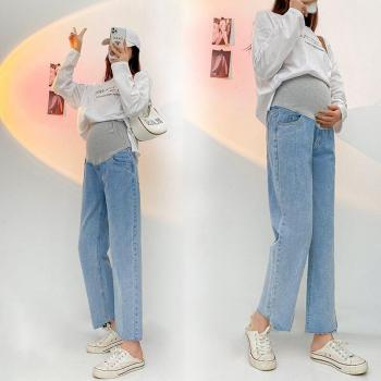 2022 Autumn Pregnant Woman's Abdomen Jeans Tall Waist Straight Canister Pants Ankle-Length Maternity Denim Trousers Cowboy Pants