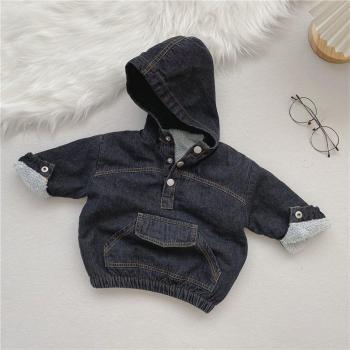 Toddler Baby Girl Boy Denim Coat Winter Casual Solid Hooded Jackets for Newborns Thicken Soft Kids Clothes Girls Costumes