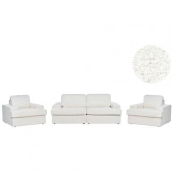 Classic 4 Seater White Boucle Upholstered Sofa Set with Armchair and Thickly Padded Backrest