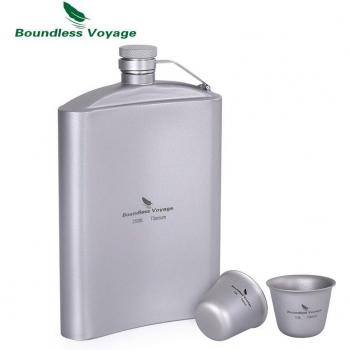 Boundless Voyage Outdoor Titanium Hip Flask Cup Set with Funnel Camping Picnic Pocket Whiskey Wine Mug Sake 8.5oz 250ml