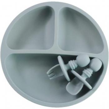 Toddler Silicone Dish Set with Fork and Spoon, Microwave Safe (3 PCS)