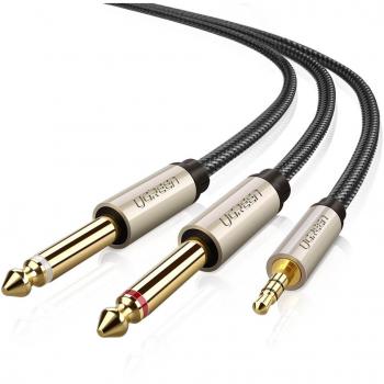 Transform a single 3.5 mm source into two 6.35 mm connections with this 2‑meter braided cable, perfect for routing keyboards, guitars or mixers to amplifiers and speakers while maintaining clean stereo sound.