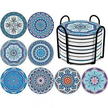 Mandala Ceramic & Cork Drink Protectors