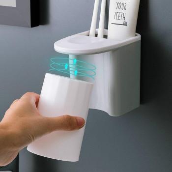 BAISPO Toothbrush Holder With Magnetic Cups Automatic Toothpaste Dispenser Holder Wall Mount Storage Bathroom Accessories