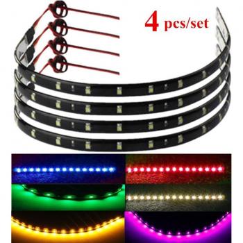 4x 30cm 15-LED Multi-Color Flexible Light Strips for Vehicles