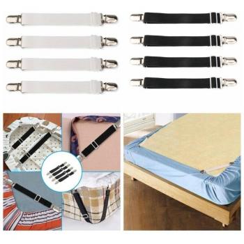 Black/White Bed Sheet Fasteners - Adjustable Clip Straps Set of 4