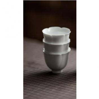 White Porcelain Tea Bowl with Flower Pattern