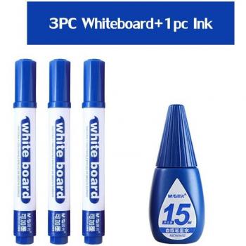 Whiteboard Marker Pen Set - 3 Erasable Markers and 1 Ink Bottle - Blue and Black