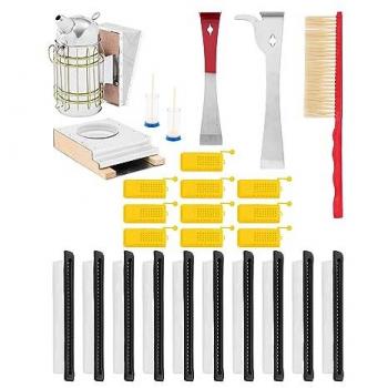 37-Piece Beekeeping Starter Kit - Smoker, Hive Chisel, Frame Holder, Honey Knife, Insect Traps