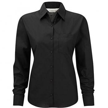 Russell Collection XL Black Women’s Long Sleeve Poplin Shirt (Easy Care)