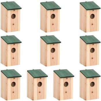 VidaXL 10 Solid Firwood Bird Houses 12x12x22 cm