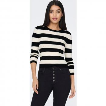 Women's Striped Round Neck Knit Sweater - Black and Beige
