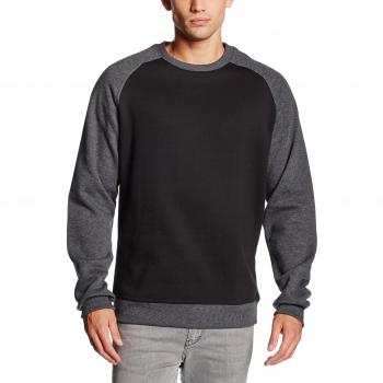 Urban Classics Men's 2-Tone Raglan Crewneck Sweatshirt - Black/Charcoal - S to 5XL
