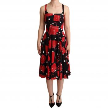 Black Red Bag Print A-line Midi Dress