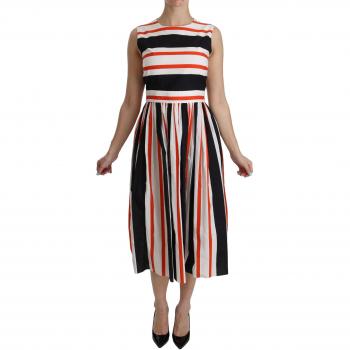 Multicolor Stripes A-Line Pleated Midi Dress