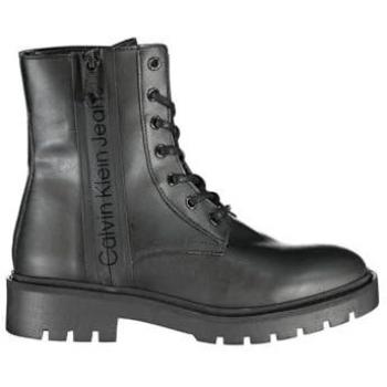 Calvin Klein, Lace-up Boots, female, Black, Size: 6 US Laced Polyester Ankle Boot with Side Zip and Print