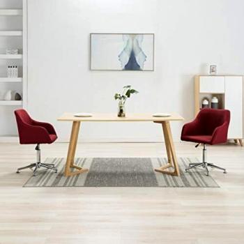 2 pcs Wine Red Fabric Swivel Dining Chairs
