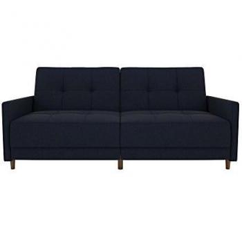 DHP Navy Blue Linen Convertible Futon with Wood and Coils