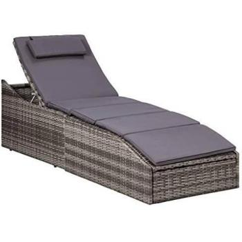 Sunbed with Cushion in Grey Poly Rattan