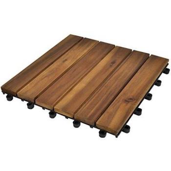 10 Piece Acacia Decking Tile Set - 11.8"x11.8" Vertical Style