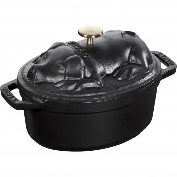 Black Staub Cocotte Piggy 17 cm – Non‑stick Matte Finish