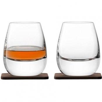 LSA Whisky Arran Tumbler 250ml Clear & Walnut Coaster Set of 2