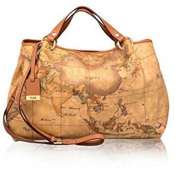 Alviero Martini 1a Classe Brown Handbag with Adjustable Strap - Classic Geo Print - ONE SIZE