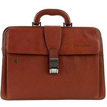 Piquadro Blue Square Executive Leather Briefcase 42 cm Brown Laptop Sleeve