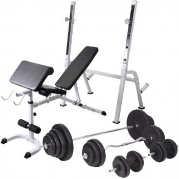 VidaXL Home Gym Workout Bench with Weight Rack and 120 kg Set