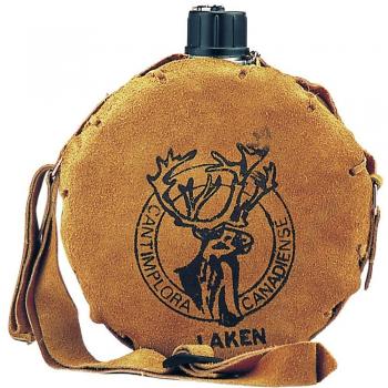 Laken Canadian 1 Litre Western Water Canteen Adjustable Shoulder Strap, Aluminum with Leather Cover, Round, Leak-Proof, BPA Free, Made in Spain